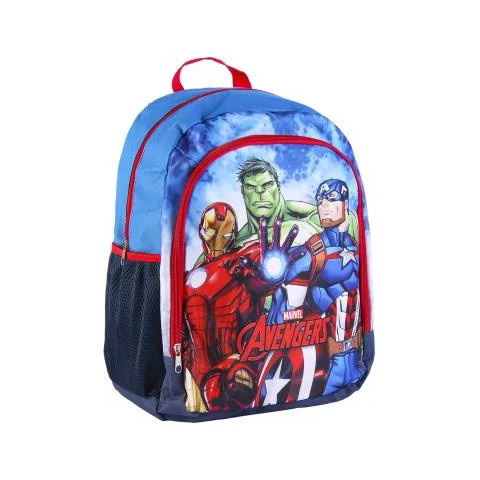 Bosszúállók Avengers iskolatáska, táska 41 cm Ergonómiai kialakítás. Két tárolóval rendelkezik illetve két oldalsó kis zsebbel. Pántjai állíthatóak, szivacsos vállpánt. Méret: 41x32x14 cm.