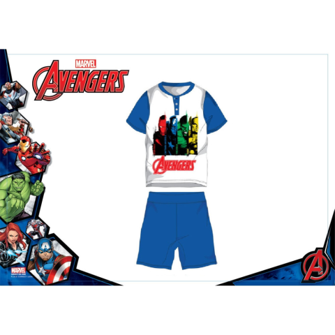 Avengers, Bosszúállók nyári gyerek rövid pizsama, gombos nyakkialakítással. Anyaga: 100% pamut Méret: 104 cm A termék díszdobozban kapható.