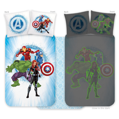 Avengers, Bosszúállók Sötétben világító ágyneműhuzat 100x135cm, 40x60cm Anyaga:100% pamut. Mérete: Párnahuzat: 40x60 cm Takaróhuzat: 100x135 cm