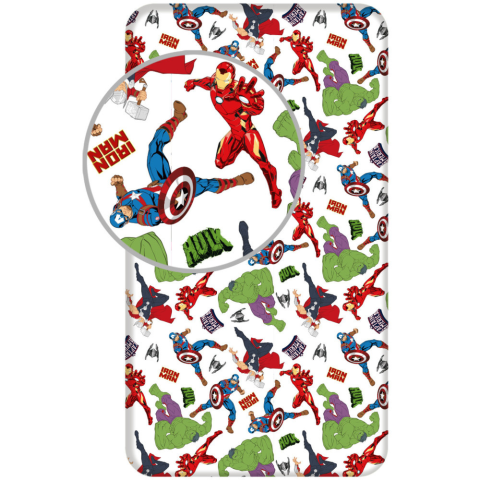 Avengers, Bosszúállók White Gumis Lepedő Anyaga: 100% pamut Mérete: 90x200 cm