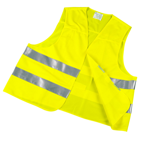 Biztonsági mellény autóba, sárga színben. Méret: XL, anyaga: polyeszter.