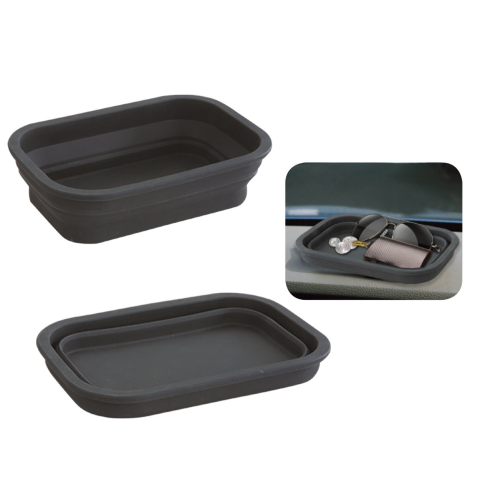 Nagyon praktikus tálca, mely csúszásgátló aljjal van ellátva, így tökéletes helye a műszerfalon van. Hasonló társaihoz képest, ez a tálca kétféleképpen használható. Amennyiben csak kisebb (laposabb) eszközöket teszünk bele, mint pl. telefon, aprópénz, szemüveg vagy iratok, akkor összehajtjuk laposra, azaz 2cm lesz a mélysége. Amennyiben már nagyobb azaz magasabb tárgyakat is belehelyezünk, mint pl. kulcscsomó, nagyobb szemüveg, nagyobb telefon stb…, akkor a per