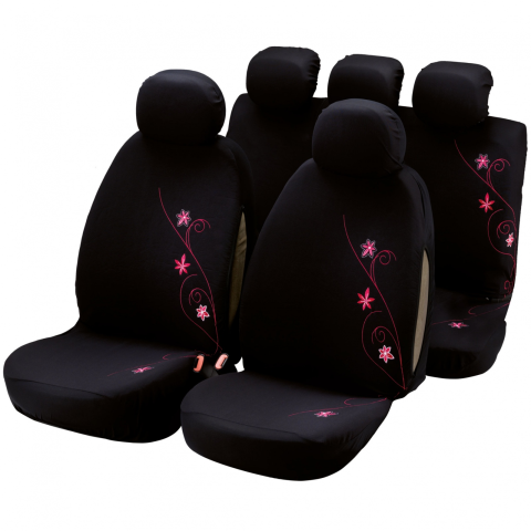 Kifejezetten hölgyek számára készült univerzális üléshuzat szett. A virágos mintázat egyedivé teszi az autó belterét és komfort érzetet biztosít. Védi az ülést az elhasználódástól, a kopástól és a kosztól. Az üléshuzat a legtöbb autótípusra illeszkedik. Nem is tudtuk mindegyiket felsorolni a listában. A virágminta, nagyon jól tud mutatni, főleg, ha a teljes szettet beszerezzük az üléshuzat mellé.