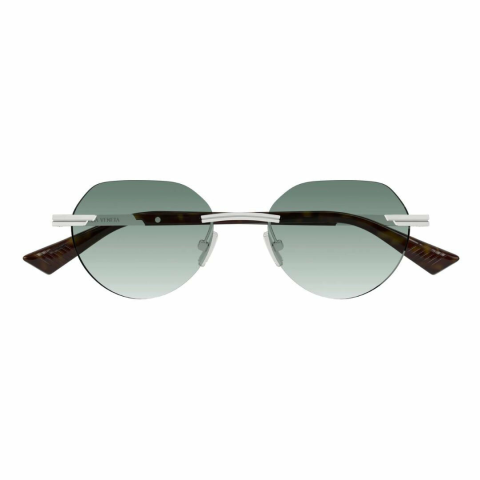 Bottega Veneta Ezüst Színű, Zöld Átmenetes Női Napszemüveg - Elegáns "Panthos" Stílus 👓 Élvezd a kifinomult stílust és a prémium minőséget a Bottega Veneta BV1379S napszemüvegével! Ez az ezüst keretes, zöld átmenetes lencsékkel készült naps...