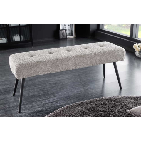 Design ülőpad Bailey 100 cm szürkés bézs pezsgő bouclé A Bailey ülőpad minden helyiségbe kényelmes és elegáns ülőhelyet kínál. Az ülőfelületet magas minőségű bouclé