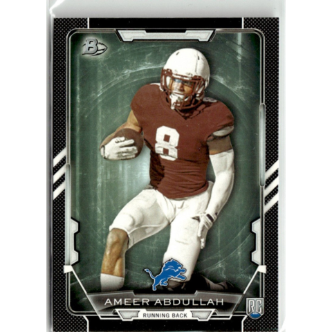 Az eladásra kínált 2015 Bowman Black Rookies #33 Ameer Abdullah nfl, amerika focis kártya NM-MT állapotban van. A focis kártyákat legtöbb esetben UP Platinum/Standard puha védőtokban és/vagy UP Toploader (kemény védőtok)-ben küldjük. Az eladásra kíná