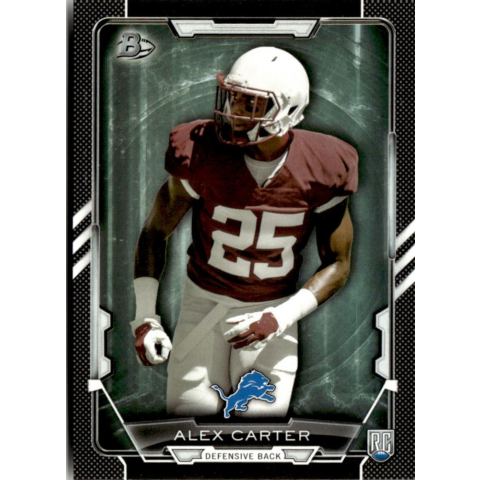 Az eladásra kínált 2015 Bowman Black Rookies #73 Alex Carter nfl, amerika focis kártya NM-MT állapotban van. A focis kártyákat legtöbb esetben UP Platinum/Standard puha védőtokban és/vagy UP Toploader (kemény védőtok)-ben küldjük. Az eladásra kínált