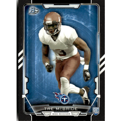 Az eladásra kínált 2015 Bowman Black Rookies #97 Tre McBride nfl, amerika focis kártya NM-MT állapotban van. A focis kártyákat legtöbb esetben UP Platinum/Standard puha védőtokban és/vagy UP Toploader (kemény védőtok)-ben küldjük. Az eladásra kínált