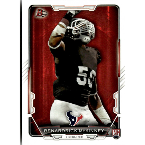 Az eladásra kínált 2015 Bowman Rookies #15 Benardrick McKinney nfl, amerika focis kártya NM-MT állapotban van. A focis kártyákat legtöbb esetben UP Platinum/Standard puha védőtokban és/vagy UP Toploader (kemény védőtok)-ben küldjük. Az eladásra kínál