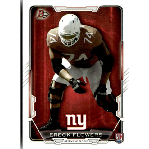 Az eladásra kínált 2015 Bowman Rookies #21 Ereck Flowers nfl, amerika focis kártya NM-MT állapotban van. A focis kártyákat legtöbb esetben UP Platinum/Standard puha védőtokban és/vagy UP Toploader (kemény védőtok)-ben küldjük. Az eladásra kínált 2015