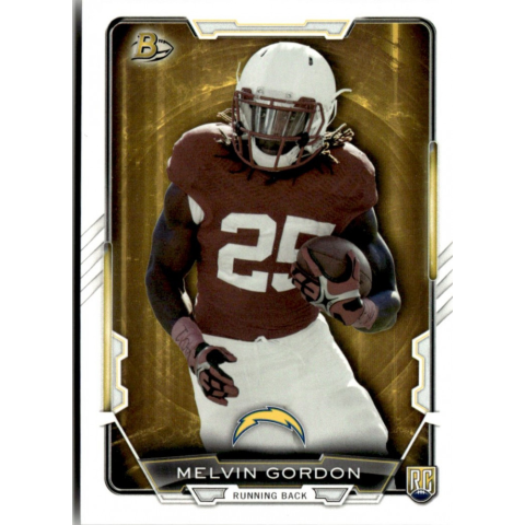 Az eladásra kínált 2015 Bowman Rookies #29 Melvin Gordon nfl, amerika focis kártya NM-MT állapotban van. A focis kártyákat legtöbb esetben UP Platinum/Standard puha védőtokban és/vagy UP Toploader (kemény védőtok)-ben küldjük. Az eladásra kínált 2015
