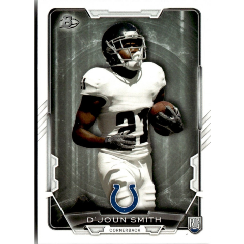 Az eladásra kínált 2015 Bowman Rookies #93 D'Joun Smith nfl, amerika focis kártya NM-MT állapotban van. A focis kártyákat legtöbb esetben UP Platinum/Standard puha védőtokban és/vagy UP Toploader (kemény védőtok)-ben küldjük. Az eladásra kínált 2015