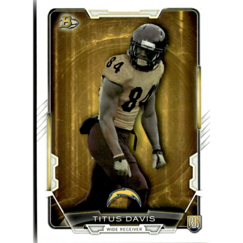 Az eladásra kínált 2015 Bowman Rookies #98 Titus Davis nfl, amerika focis kártya NM-MT állapotban van. A focis kártyákat legtöbb esetben UP Platinum/Standard puha védőtokban és/vagy UP Toploader (kemény védőtok)-ben küldjük. Az eladásra kínált 2015 B
