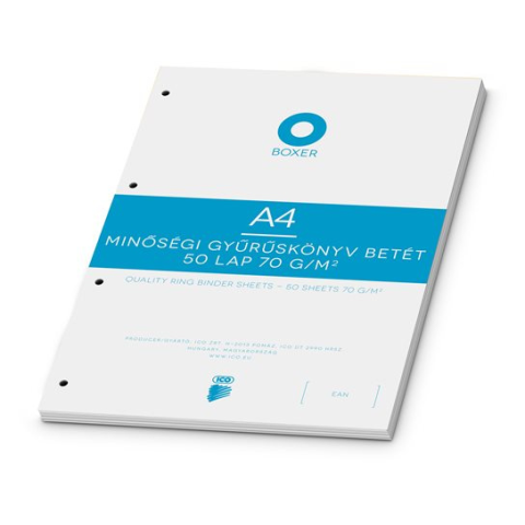 Gyűrűs könyv betét, A4, kockás, 50 lap, BOXER, fehér