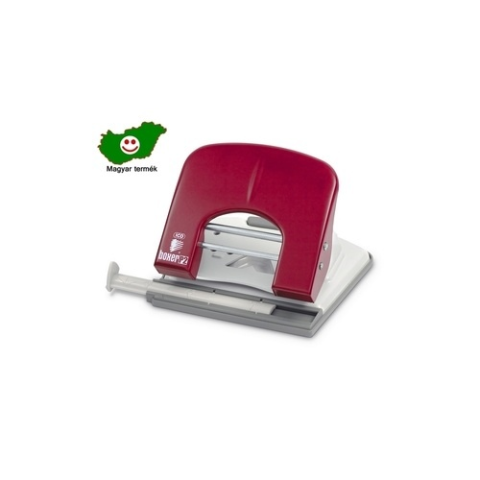 Irodai, asztali, színes fémvázas lyukasztó, távtartóval, papírhulladék tartóval ellátva, 30 lap lyukasztási kapacitással.