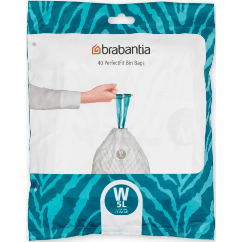 Brabantia PerfectFit szemeteszsák, W méret, 5L, visszazárható adagoló csomag, 40 zsák/csomag - 137846