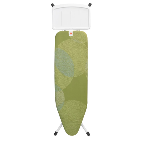 A Brabantia B méretű vasalódeszkája kifejezetten gőzállomásokhoz lett tervezve. 124x38 cm-es vasalófelülettel, 69 és 96 cm között állítható magassággal, valamint egy extra nagy, 10 kg teherbírású fix vasalótálcával rendelkezik. A gyerekzár és a csúszásmen