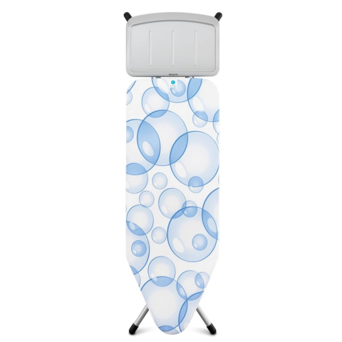 A Brabantia C méretű vasalódeszkája kifejezetten gőzállomásokhoz lett tervezve, és egy speciális, háromrétegű PerfectFlow huzattal rendelkezik. Ez a technológia felgyorsítja a vasalást és megakadályozza a víz padlóra csepegését. Extra széles, 124x45 cm-es