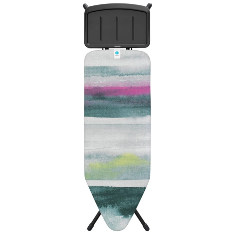 A Brabantia C méretű vasalódeszkája kifejezetten gőzállomásokhoz lett tervezve. Extra széles, 124x45 cm-es vasalófelülettel, 75 és 98 cm között állítható magassággal, valamint egy nagy, 10 kg teherbírású fix vasalótálcával rendelkezik. A gyerekzár és a cs