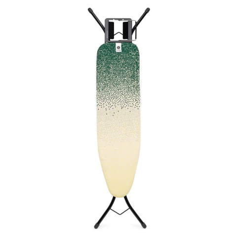 A Brabantia A méretű vasalódeszkája kompakt és stabil megoldás a mindennapi vasaláshoz, amelynek különlegessége a Fairtrade minősítésű pamuthuzat. 110x30 cm-es vasalófelülettel, 69 és 96 cm között állítható magassággal, valamint egy kinyitható vasalótámas