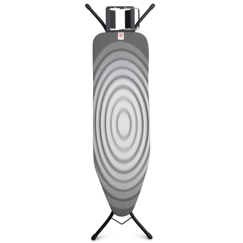 A Brabantia B méretű vasalódeszkája egy stabil és népszerű megoldás a mindennapi vasaláshoz. 124x38 cm-es vasalófelülettel, 69 és 96 cm között állítható magassággal, valamint egy kinyitható, jobb- és balkezesek számára is ideális vasalótámasszal rendelkez