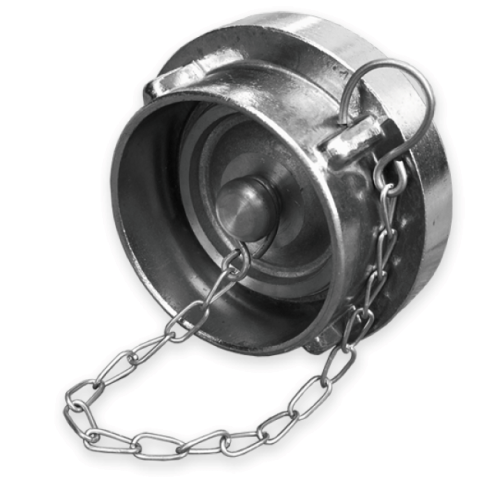 Storz csatlakozóval szerelt tömlők, és fix csatlakozási pontok lezárására szolgáló zárókupak.