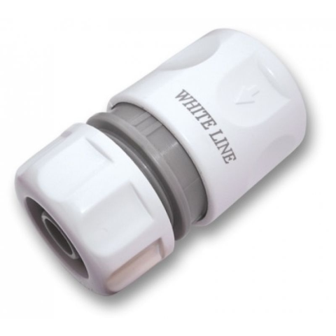 Brad's White Line WL-2120 gyorscsatlakozó 1/2"1/2"-os vagy 5/8"-os tömlőhöz használható, kiváló minőségű, PVC gyorscsatlakozó. A tömlő két végére lehet felszerelni, így egyéb alkatrészeket is gyorsan rögzíthetünk az öntöző