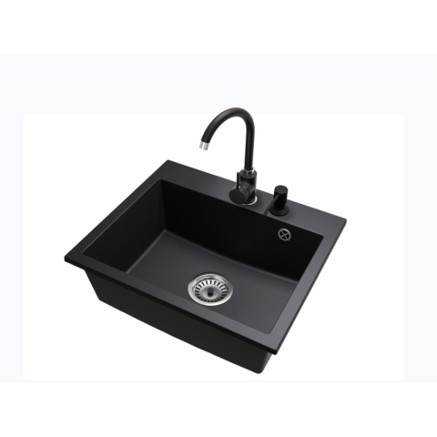 Brado Exclusive 55 gránit mosogató automata dugóemelő, szifonnal, fekete, beépíthető mosogatótálca termékleírás