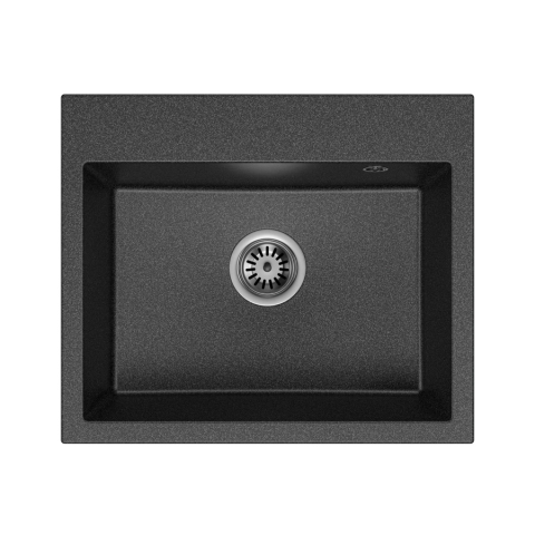 1 kép Brado Exclusive 55 gránit mosogató FALI CSAPHOZ, szifonnal, fekete-szemcsés, beépíthető