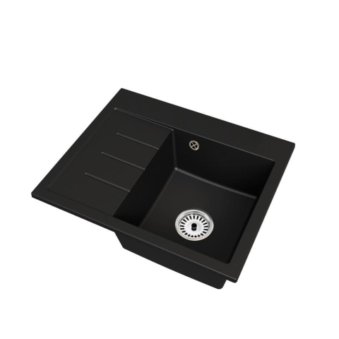 1 kép Brado Exclusive 60 gránit mosogató, jobbos csepegtetővel, fekete, beépíthető