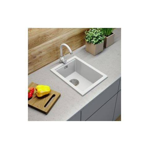 1 kép Brado Gamma Decor 3850 gránit mosogató, szifonnal, fehér, beépíthető