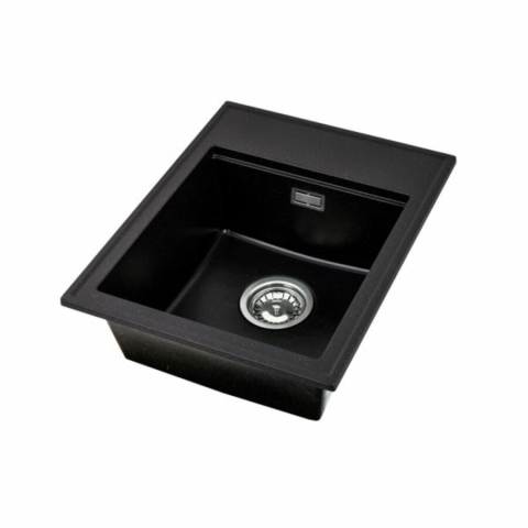Brado Modern 4050 gránit mosogató automata dugóemelő, szifonnal, fekete-arany-szemcsés, beépíthető mosogatótálca termékleírás