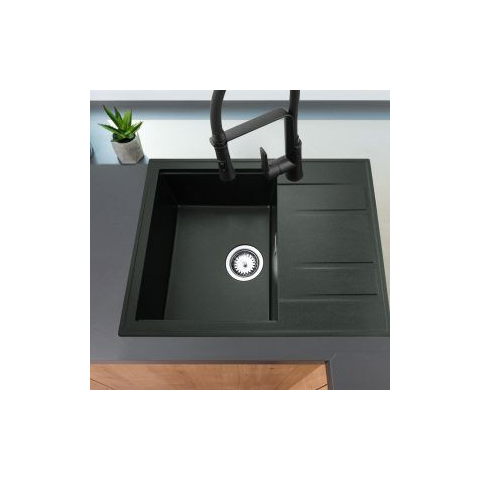 Brado Modern 6550 csepegtetőtálcás egymedencés gránit mosogató, manuális szifonnal, fekete-arany-szemcsés, beépíthető mosogatótálca termékleírás