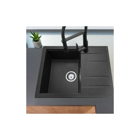 1 kép    Brado Modern 6550 csepegtetőtálcás egymedencés gránit mosogató, manuális szifonnal, fekete-szemcsés, beépíthető