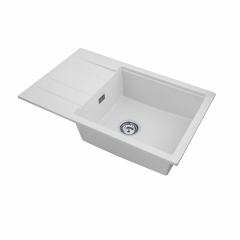 1 kép    Brado Modern 8010 csepegtetőtálcás egymedencés gránit mosogató, manuális szifonnal, fehér, beépíthető