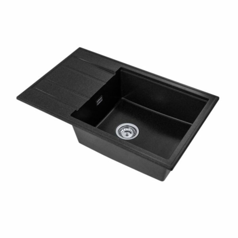 1 kép Brado Modern 8010 csepegtetőtálcás egymedencés gránit mosogató, manuális szifonnal, fekete-szemcsés, beépíthető
