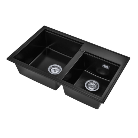 Brado Modern 8020 kétmedencés gránit mosogató, manuális szifonnal, fekete, beépíthető mosogatótálca termékleírás