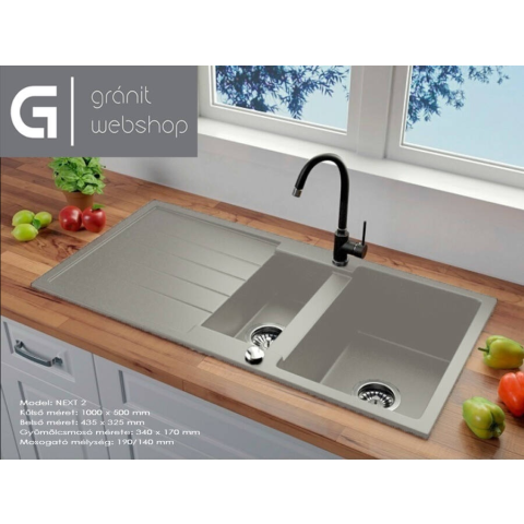 Brado NEXT2 másfél medencés gránit mosogató automata dugóemelő, szifonnal, szürke, beépíthető mosogatótálca termékleírás