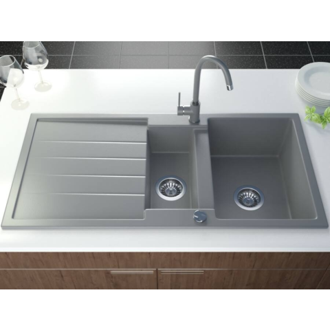 1 kép Brado NEXT2 másfél medencés gránit mosogató FALI CSAPHOZ automata dugóemelővel, szifonnal, szürke, beépíthető