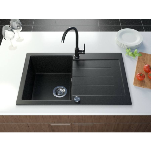 Brado Roxy gránit mosogató automata dugóemelő, szifonnal, fekete-szemcsés, beépíthető mosogatótálca termékleírás