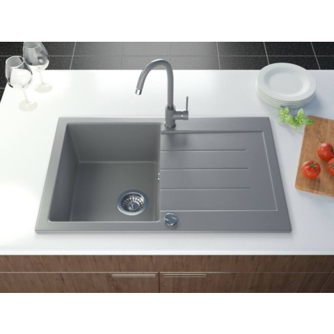 1 kép Brado Roxy gránit mosogató FALI CSAPHOZ automata dugóemelővel, szifonnal, szürke, beépíthető
