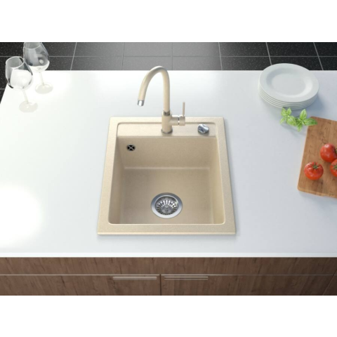 Brado Start Don gránit mosogató automata dugóemelő, szifonnal, bézs-szemcsés, beépíthető mosogatótálca termékleírás