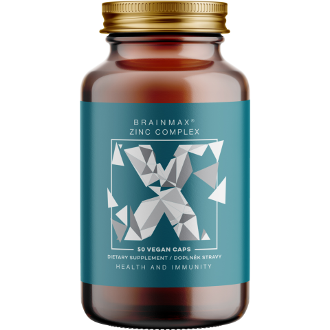 A BrainMax Zinc Complex a cink, a szelén és a réz magas biológiailag hozzáférhető formáinak szinergikus kombinációja. Minden kapszula 15 mg elemi cinket, 1 mg rezet és 490 mg szerves kurkumát tartalmaz. A cink cink-biszglicinát formájában a leginkább felszívódó forma a szervezet számára, a citrát formájú rézzel kombinálva pedig még fokozódik a felszívódása.A cink támogatja az immunrendszert, a hormonháztartást, a termékenységet, a csontok egészségét, és ne