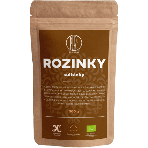 1 kép    BrainMax Pure Raisins Sultanas BIO, 500g *CZ-BIO-001 certifikát