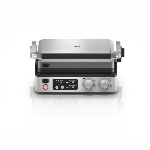 Kontakt grill - 2000 W teljesítmény, 2 db, összesen 667 cm2 grillfelület, grill anyaga: rozsdamentes acél, kijelző, tapadásmentes felület, csepptálca, hőszabályzás és kivehető rács, tömege: 7,367 kg Select brand: Nincs kitöltve Alternatív szöveg a fotóhoz! Braun CG7044 kontakt grillA Braun CG7044 kontakt grill segítségével grillezett specialitásokat, paninit és gofrit készíthetsz. 2 független ter