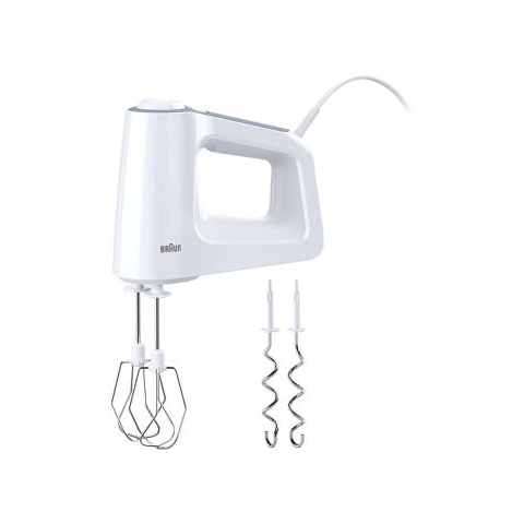 Termékleírás: MultiMix3, teljesítmény 450 W, változtatható sebességű, 5 sebességfokozat, turbó gomb, 2 habverő, 2 dagasztó, kiegészítők mosogatógépben mosható, színe fehér