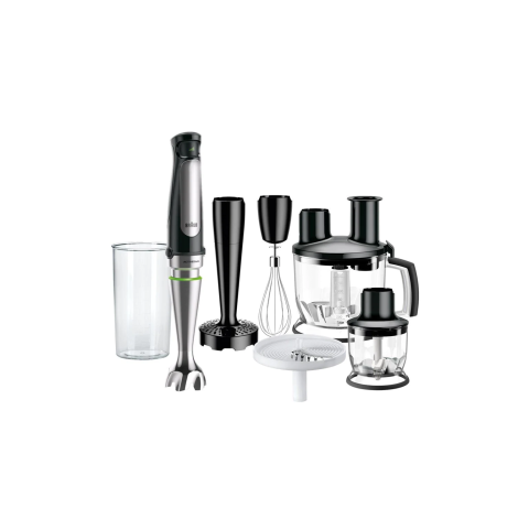 Features:Cord length: 1.2 mDishwasher-proof parts: YesType: Immersion blenderProduct colour: Stainless steel, BlackPower:Power: 1000 WPower source: ACPerformance:Chopper bowl capacity: 0.35 LChopper: YesBowl capacity: 1.2 LPulse function: YesSmoothie beaker: Yes