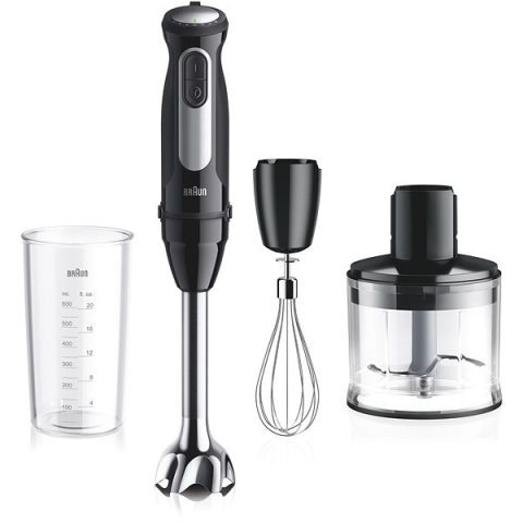 Botmixer - 1000 W teljesítmény, 26 sebességfokozat, mosogatógépben mosható tartozékok, folyamatos sebességvezérlés a gomb nyomvatartásával és turbo sebesség, jégtörés, vágás, habverés és mixelés, 2 penge, aprító+aprítóedény, keverőedény, habverő és keskeny keverőrúd mellékelve, rozsdamentes acél keverőszár Braun MultiQuick 5 Pro MQ55.236.M botmixer A rendkívül hatékony Braun MultiQuick 5 Pro MQ55.236.M botmixerrel könnyedén érhetsz el tökéletes eredm
