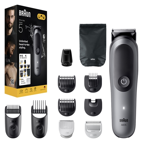 Trimmelő - használható haj, mellkas, bajusz, hát, szemöldök, intim részek, hónalj és orr/fülek trimmelésére, férfiak részére, funkciók: gyorstöltés, csúszásgátló fogantyú és állítható vágási hossz, pengék acél, min. vágási hosszúság 0,5 mm, max. vágási hosszúság 21 mm, akkumulátoros, nyomógombos vezérlés Braun Series 5 AIO5560 11in1 trimmelőPrecíz megjelenésre vágysz tetőtől talpig? Akkor válaszd a Braun Series 5 AIO5560 11in1 trimmelőt. Éles a
