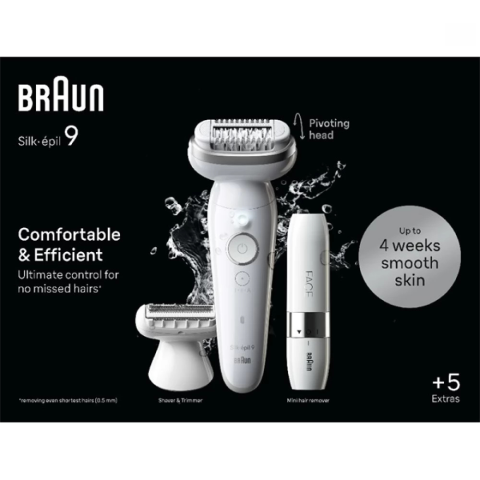 Braun Silk·épil 9, Epilátor az Egyszerű Szőrtelenítéshez, Tartósan Sima Bőr, 9-331, Fehér/ezüst A Braun Silk·épil 9 epilátorral akár egy hónapon át élvezheti a sima bőr élményét, kényelmesen, bármi...